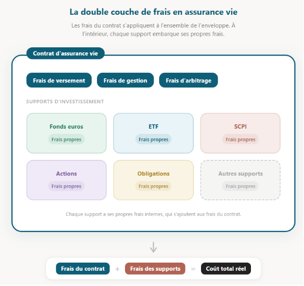 Au-delà des frais propres au contrat d'assurance vie, chaque support d'investissement embarque ses propres frais internes. Cette superposition de coûts est souvent mal comprise des épargnants, alors qu'elle joue un rôle déterminant dans la performance finale du placement.