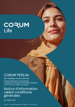 CORUM PERLife est un plan d'épargne retraite composé d’unités de compte et d’un fonds euro. Contrairement au fonds euro qui garantit le capital, les unités de compte sont sujettes à des fluctuations, à la hausse ou à la baisse. Elles présentent des risques de perte en capital dépendant en particulier de l’évolution des marchés financiers ou immobiliers. Les performances passées ne préjugent pas des performances futures.